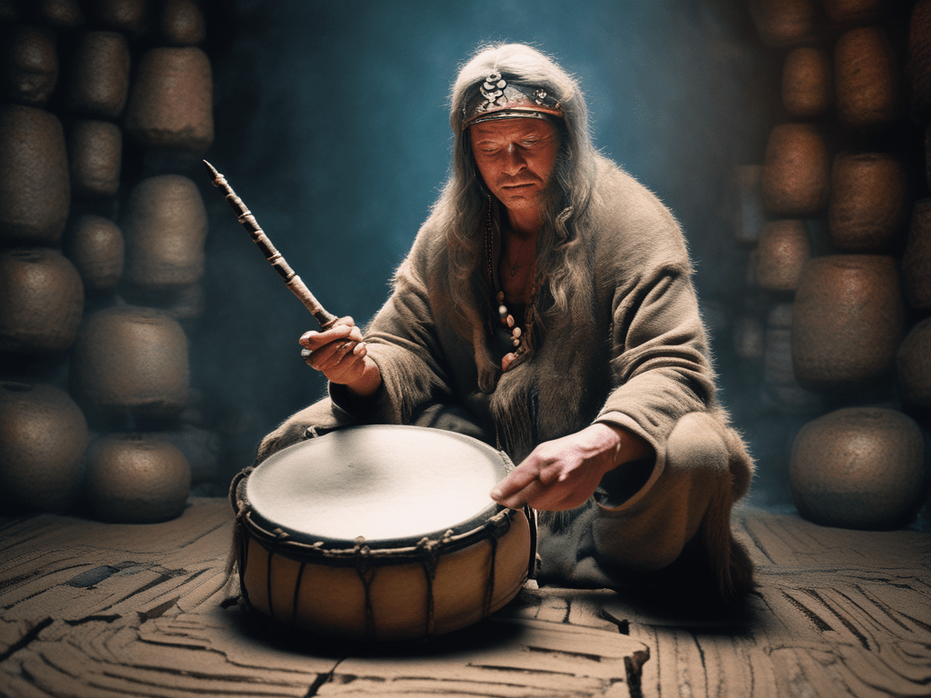 1. Drum and Chant: The shaman uses a drum to create a repetitive rhythm, often accompanied by ritual chants. This sound combination induces a trance state by modifying the shaman’s consciousness.