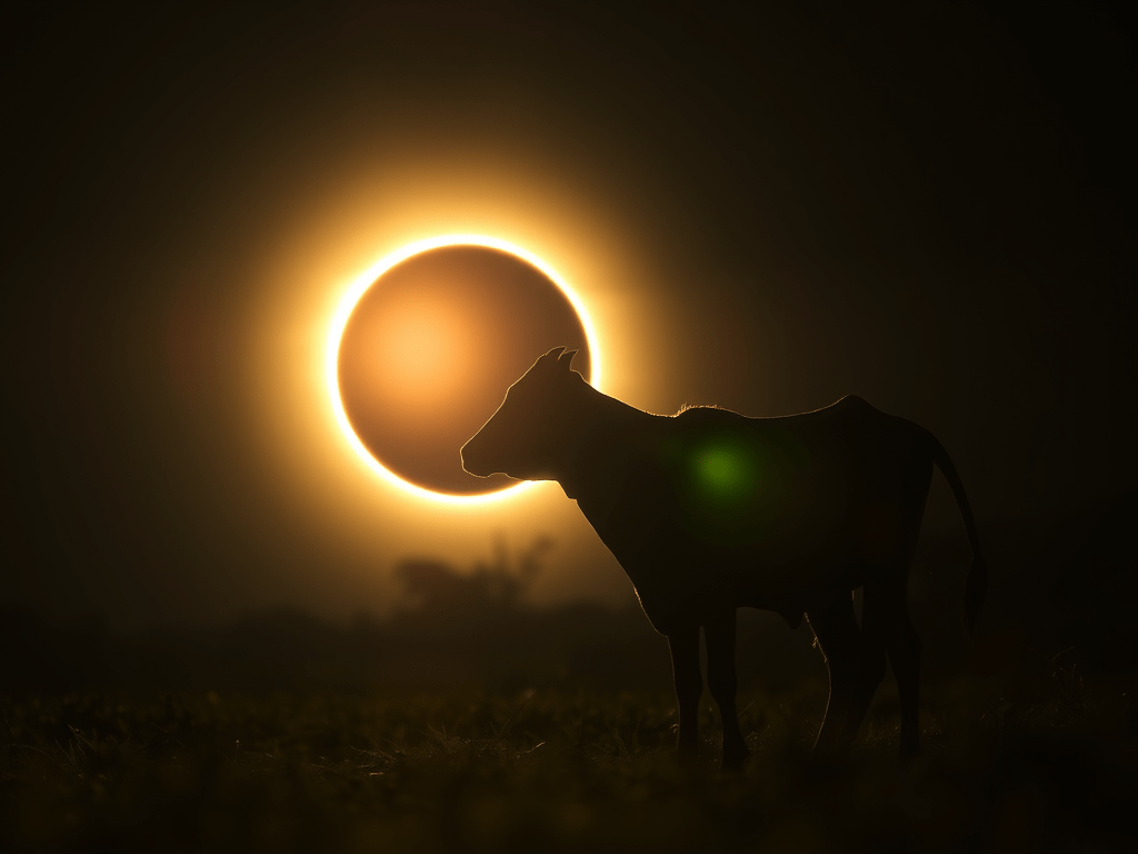 L’éclipse solaire du 19 février 3929 BCE est mentionnée dans le Rig Veda comme un événement marquant. Cet événement astronomique a inspiré de nombreux mythes, dont celui du vol des vaches par les Panis, un groupe décrit comme des avares dans la civilisation des 7 rivières. Ce mythe, profondément symbolique, raconte comment les Panis volent les vaches et les cachent dans une grotte, provoquant ainsi l’obscurité et la nuit.