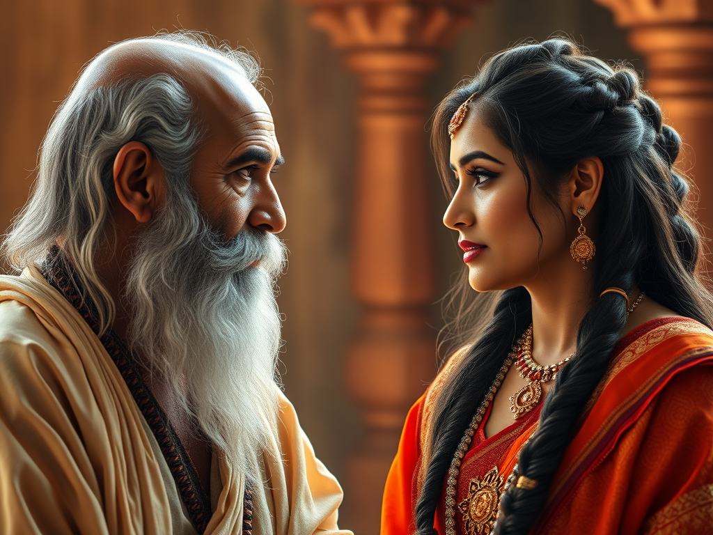 This hymn presents a rare and intimate dialogue between the sage Agastya and his wife Lopâmudrâ. It is one of the few hymns in the Rig Veda that openly explores human love, aging, and the desire for union — both physical and spiritual.