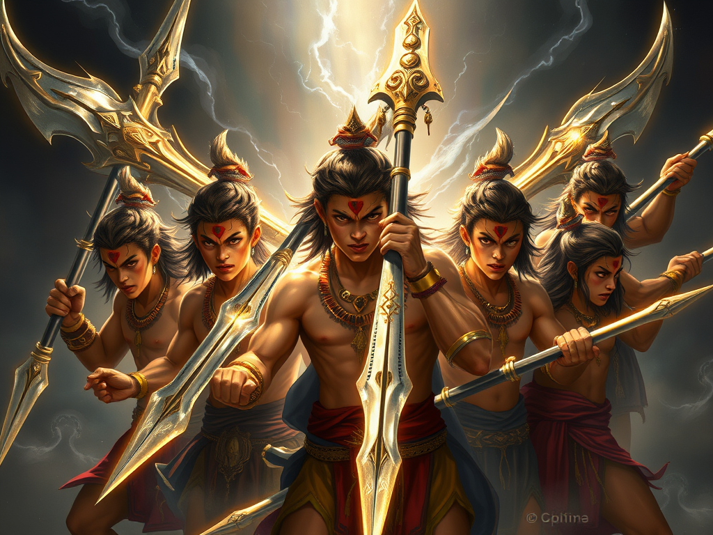 Les Maruts sont décrits comme jeunes, fougueux, toujours en groupe, armés d’éclairs et de tonnerre.