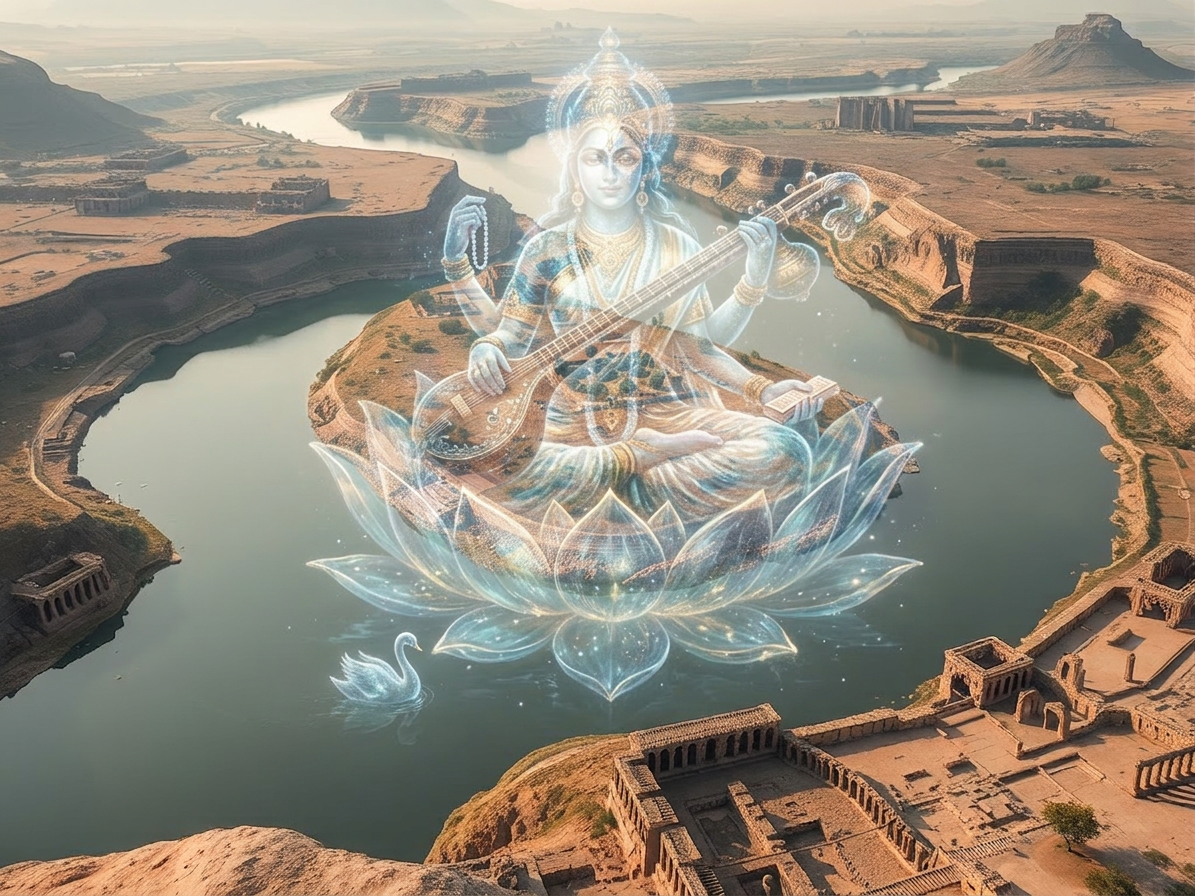 For Sarasvati is simultaneously and inseparably the river and the goddess of knowledge. This simultaneity is the key to everything. The Western translators who wished to separate the two, who saw in Sarasvati-the-river a physical reality and in Sarasvati-the-goddess a symbolic reality, missed something essential. For the Vedic rishis, there were not two Sarasvatis. There was one, manifested at two different levels of the same reality. The river and knowledge are not two things linked by a metaphor. They are two expressions of the same fundamental principle: flow.
